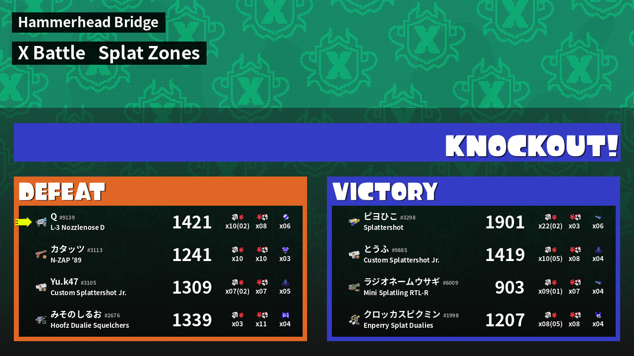 | Mode | Splat Zones - X Battle | ||