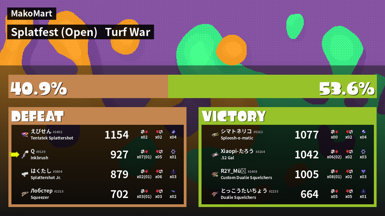 | Medals | #1 Overall Splatter #1 Enemy-Base Inker #1 Enemy Splatter | ||