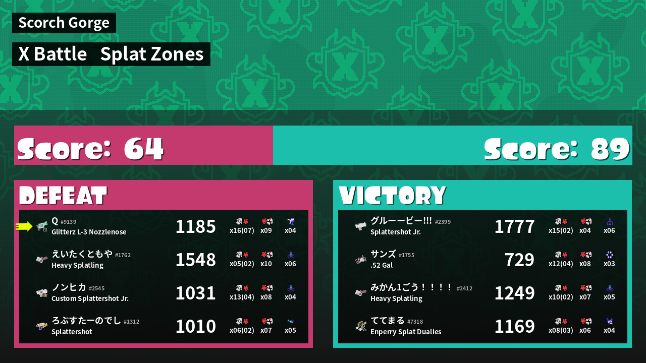 | Mode | Splat Zones - X Battle | ||