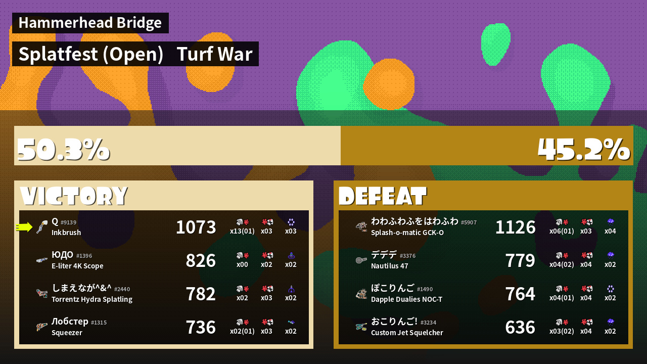 | Medals | #1 Overall Splatter #1 Turf Inker #1 Enemy-Base Inker | ||
