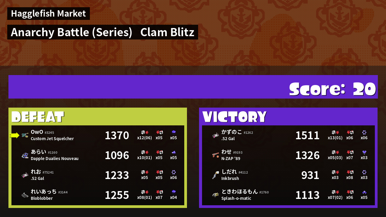 | Mode | Clam Blitz - Anarchy Battle (Series) | ||
