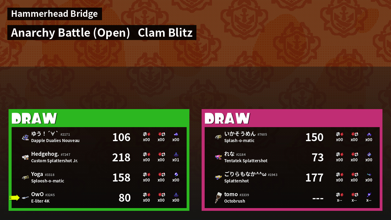 | Mode | Clam Blitz - Anarchy Battle (Open) | ||