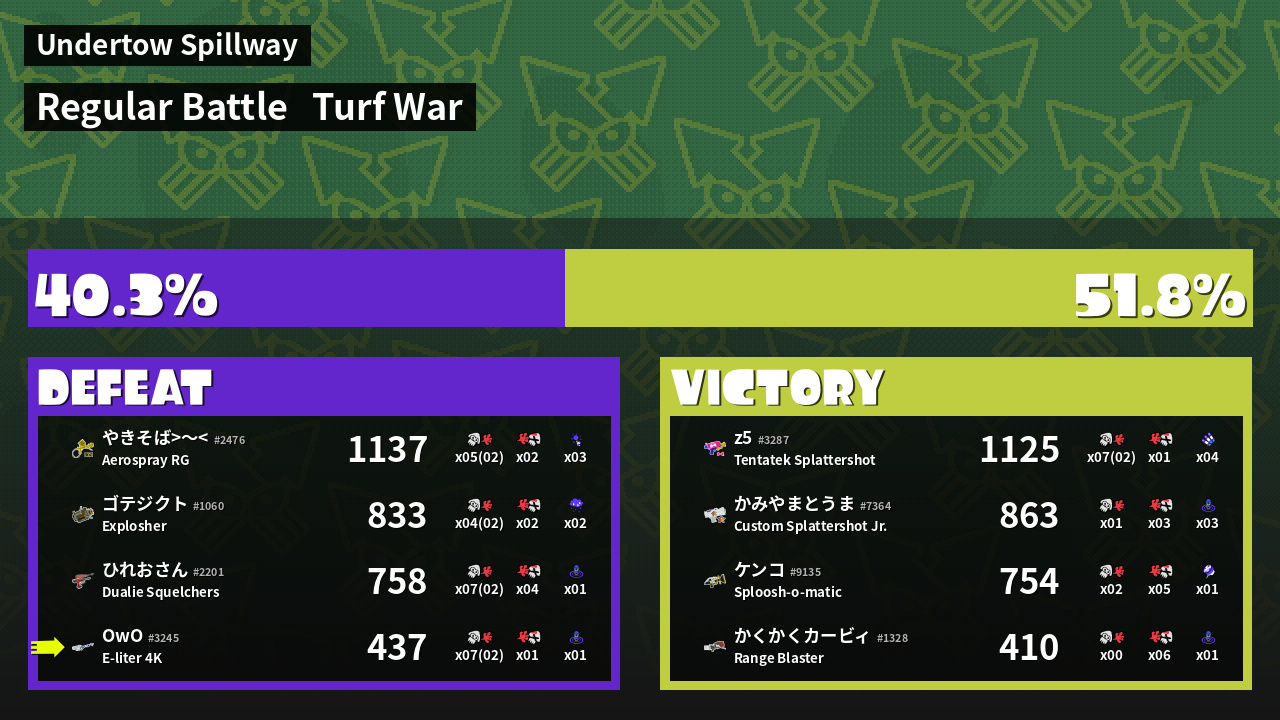 | 超人的魚漿幫粉絲 ひれおさん #2201 |  Dualie Squelchers                    | 758 | 5 + 2 | 4 | 1.25 |  1 | |