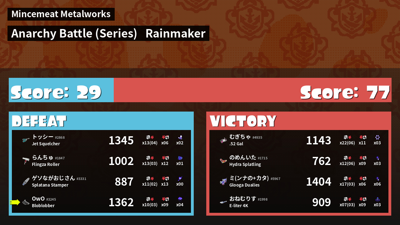 | Mode | Rainmaker - Anarchy Battle (Series) | ||