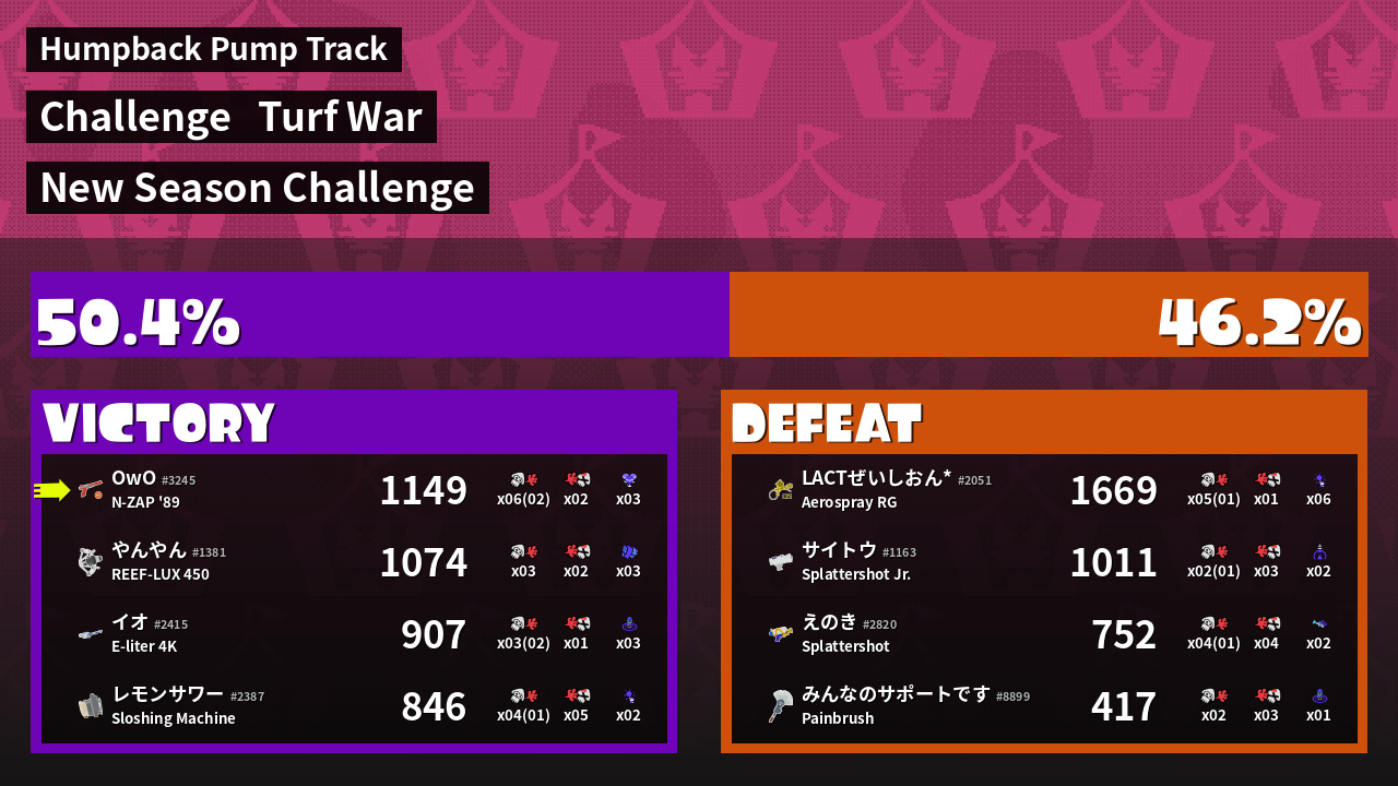 | Mode | Turf War - Challenge | ||
