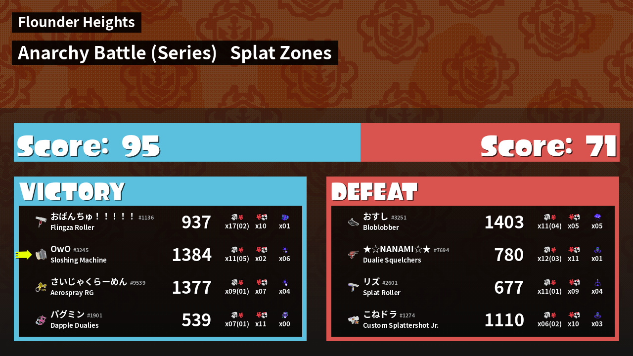 | Mode | Splat Zones - Anarchy Battle (Series) | ||