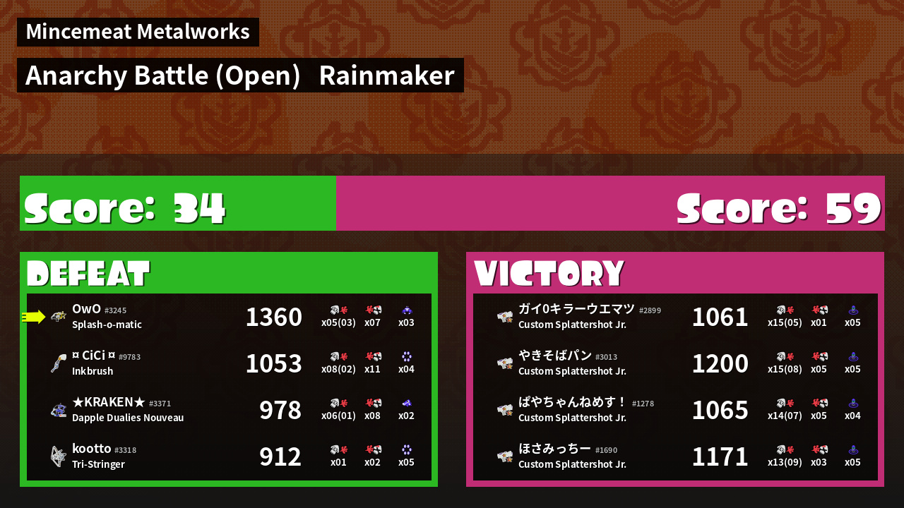 Name | Weapon | Inked | ![]() |