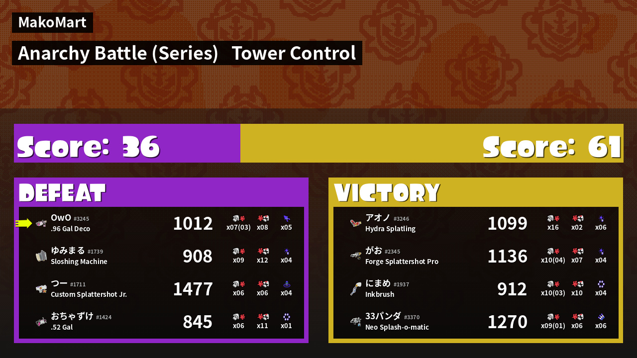 | Mode | Tower Control - Anarchy Battle (Series) | ||