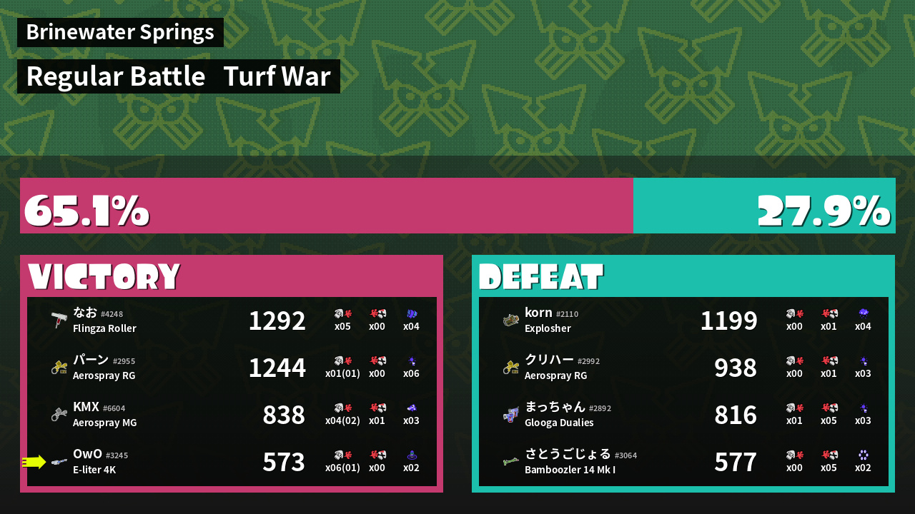 | Medals | #1 Overall Splatter #1 Enemy Splatter First Splat! | ||