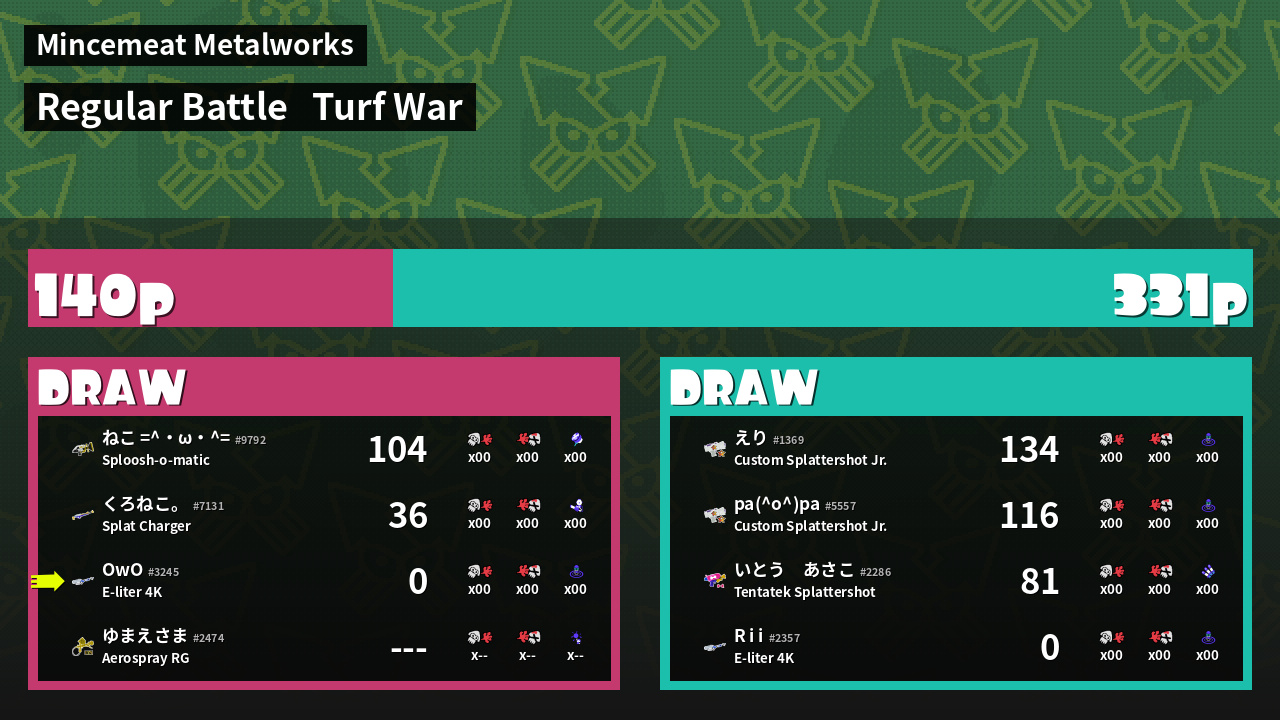 | Mode | Turf War - Regular Battle | ||