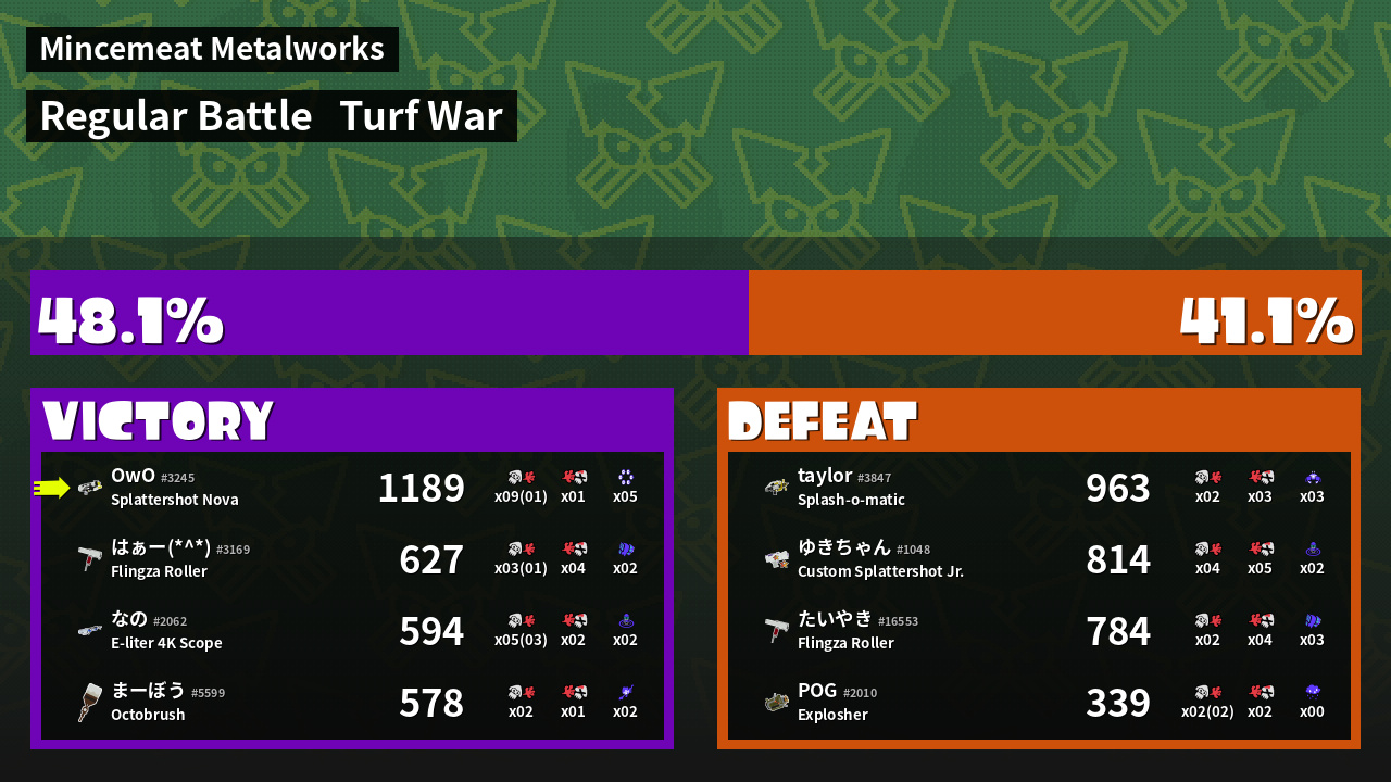 Kills / Deaths | 8 + 1 / 1 > Kill Ratio: 8.00 | ||
