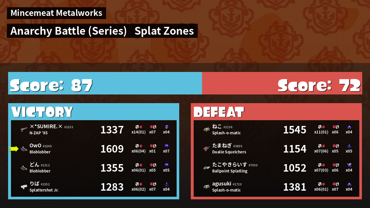 | Mode | Splat Zones - Anarchy Battle (Series) | ||