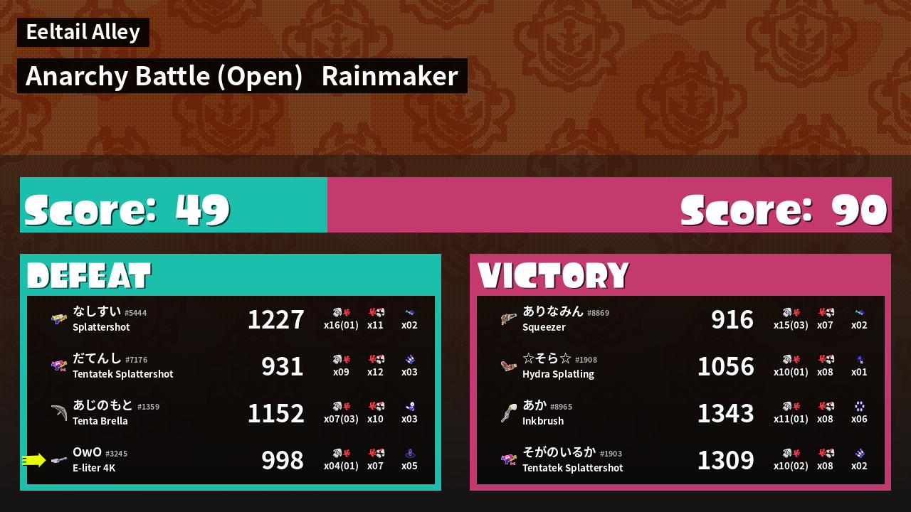 Name | Weapon | Inked | ![]() |