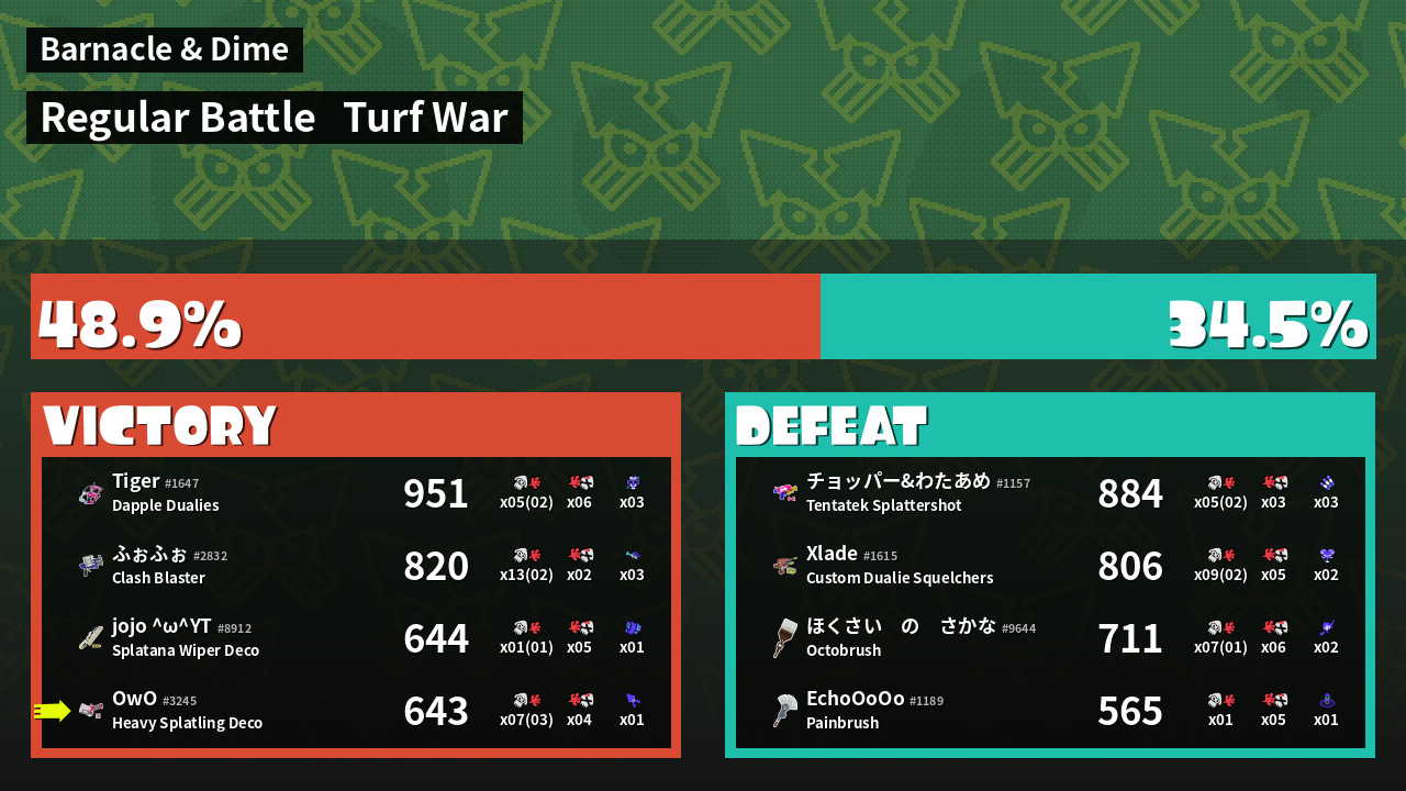 | Medals | #1 Splat Assister #1 Base Defender #2 Overall Splatter | ||
