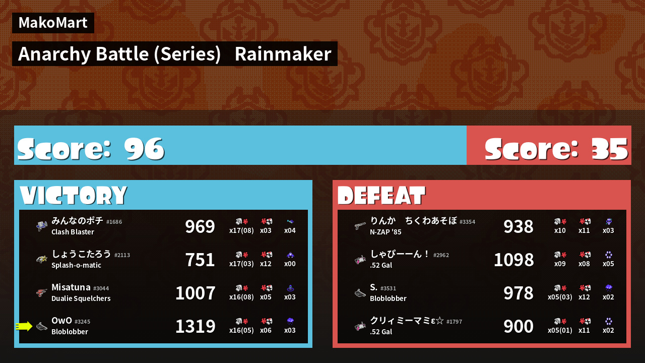 | Mode | Rainmaker - Anarchy Battle (Series) | ||