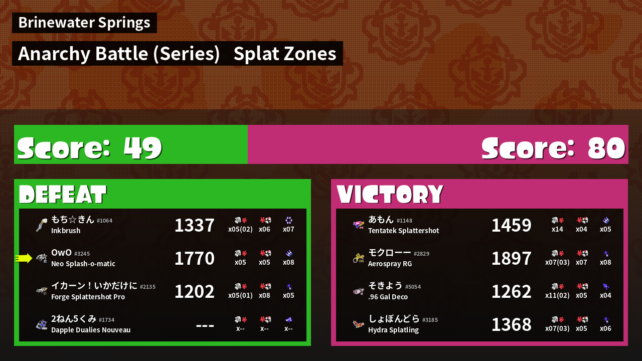 | Mode | Splat Zones - Anarchy Battle (Series) | ||