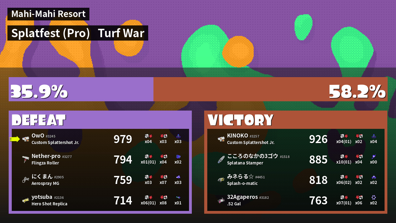 | Mode | Turf War - Splatfest (Pro) | ||
