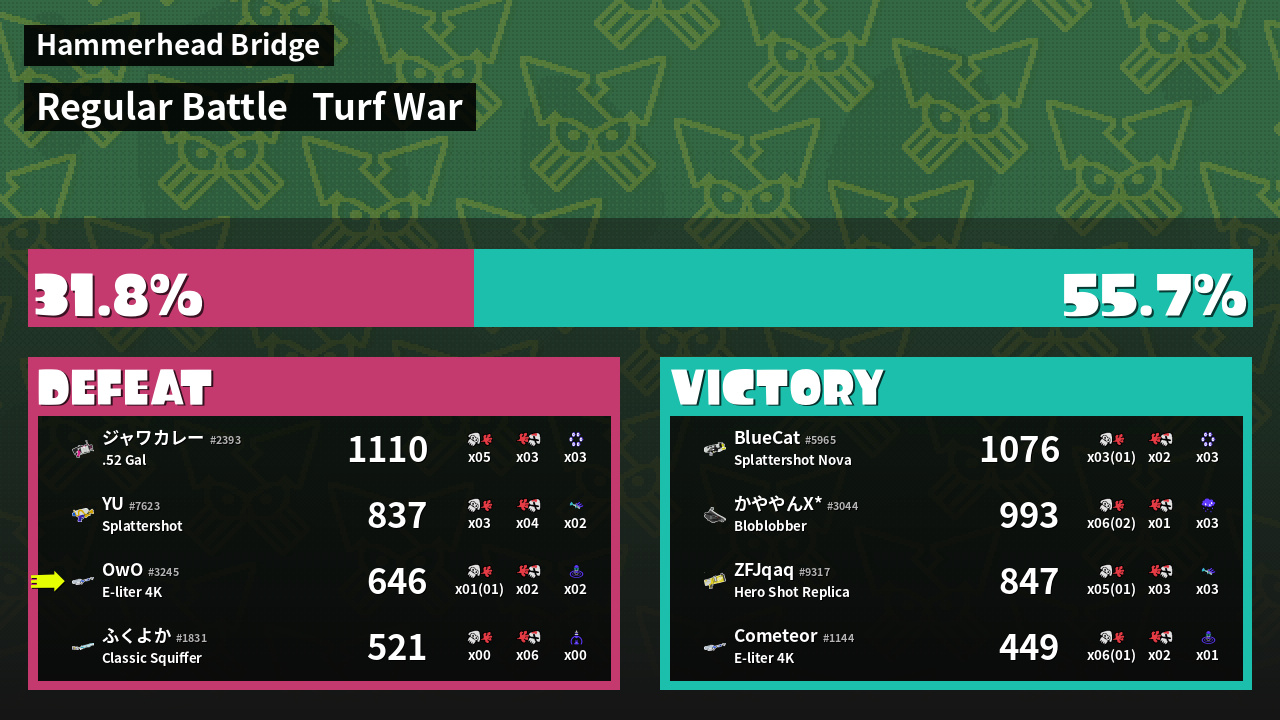 | Medals | #1 Splat Assister #1 Base Defender #1 Wave Breaker User | ||