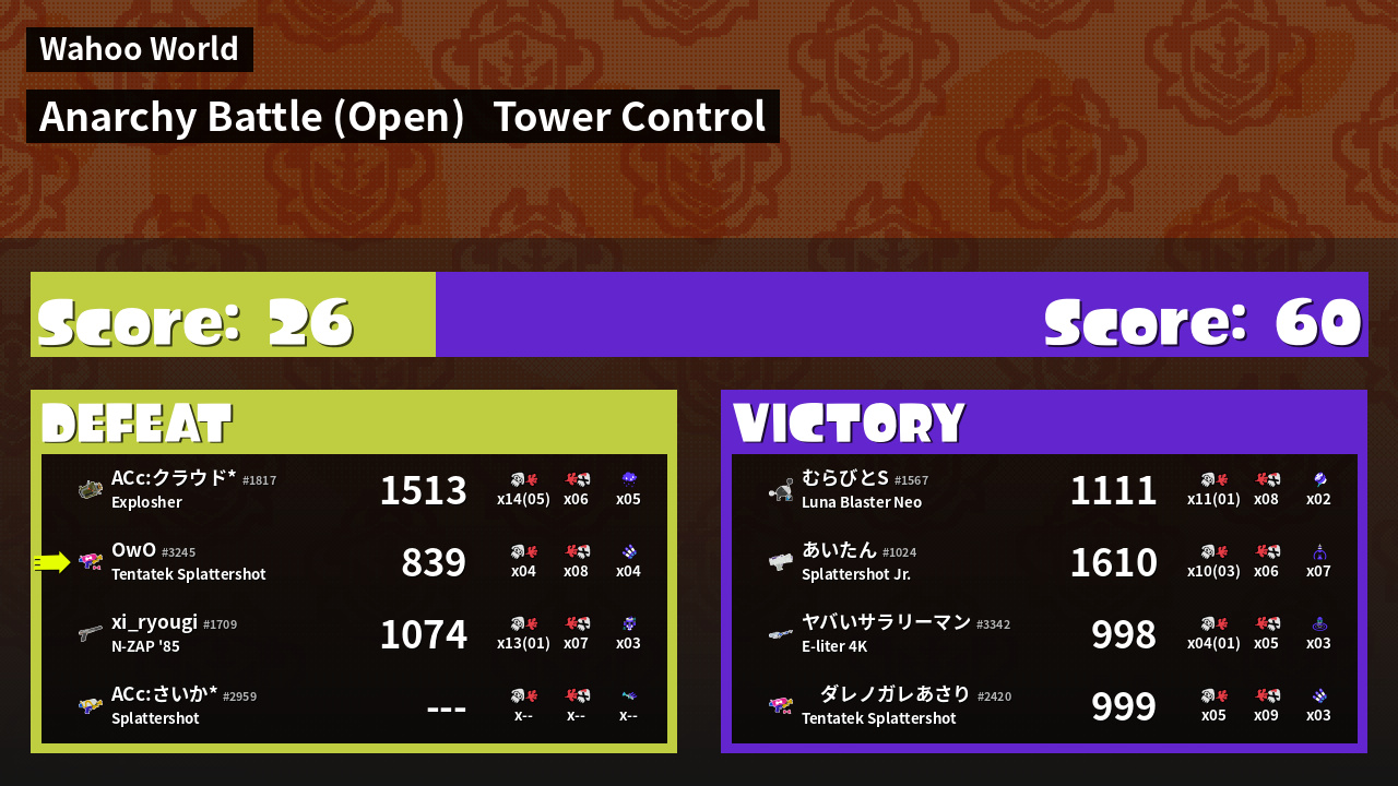 | Mode | Tower Control - Anarchy Battle (Open) | ||