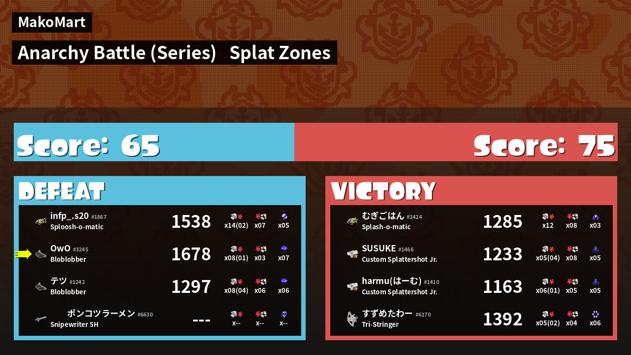 | Mode | Splat Zones - Anarchy Battle (Series) | ||