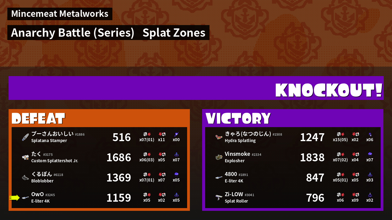 | Mode | Splat Zones - Anarchy Battle (Series) | ||