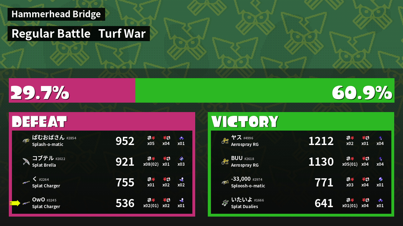 | Medals | #1 Ink Consumer #2 Splat Assister | ||