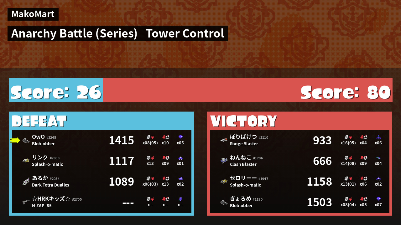 | Mode | Tower Control - Anarchy Battle (Series) | ||