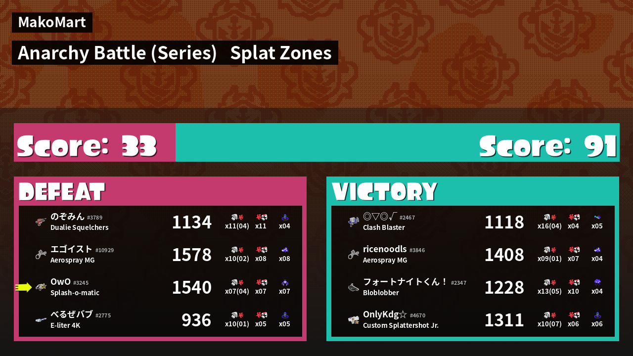 | Mode | Splat Zones - Anarchy Battle (Series) | ||