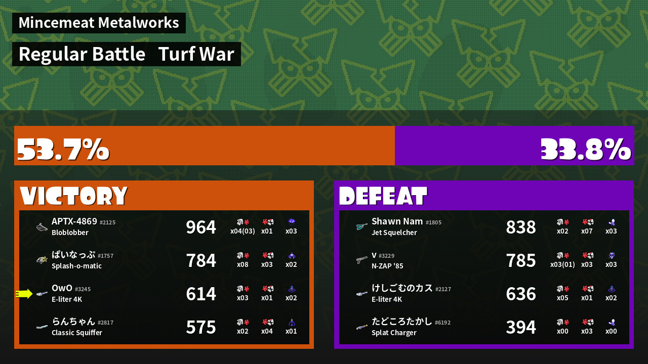 Name | Weapon | Inked | ![]() |