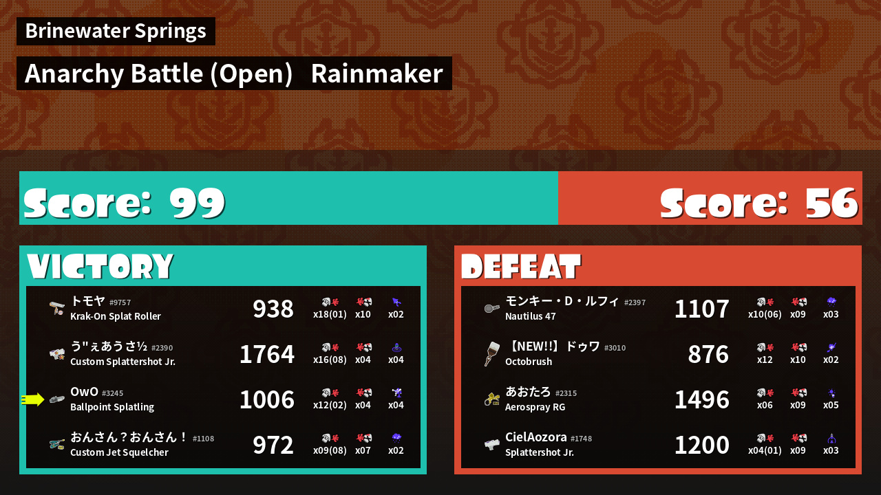 | Mode | Rainmaker - Anarchy Battle (Open) | ||