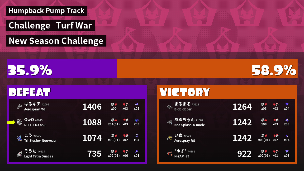 | Mode | Turf War - Challenge | ||