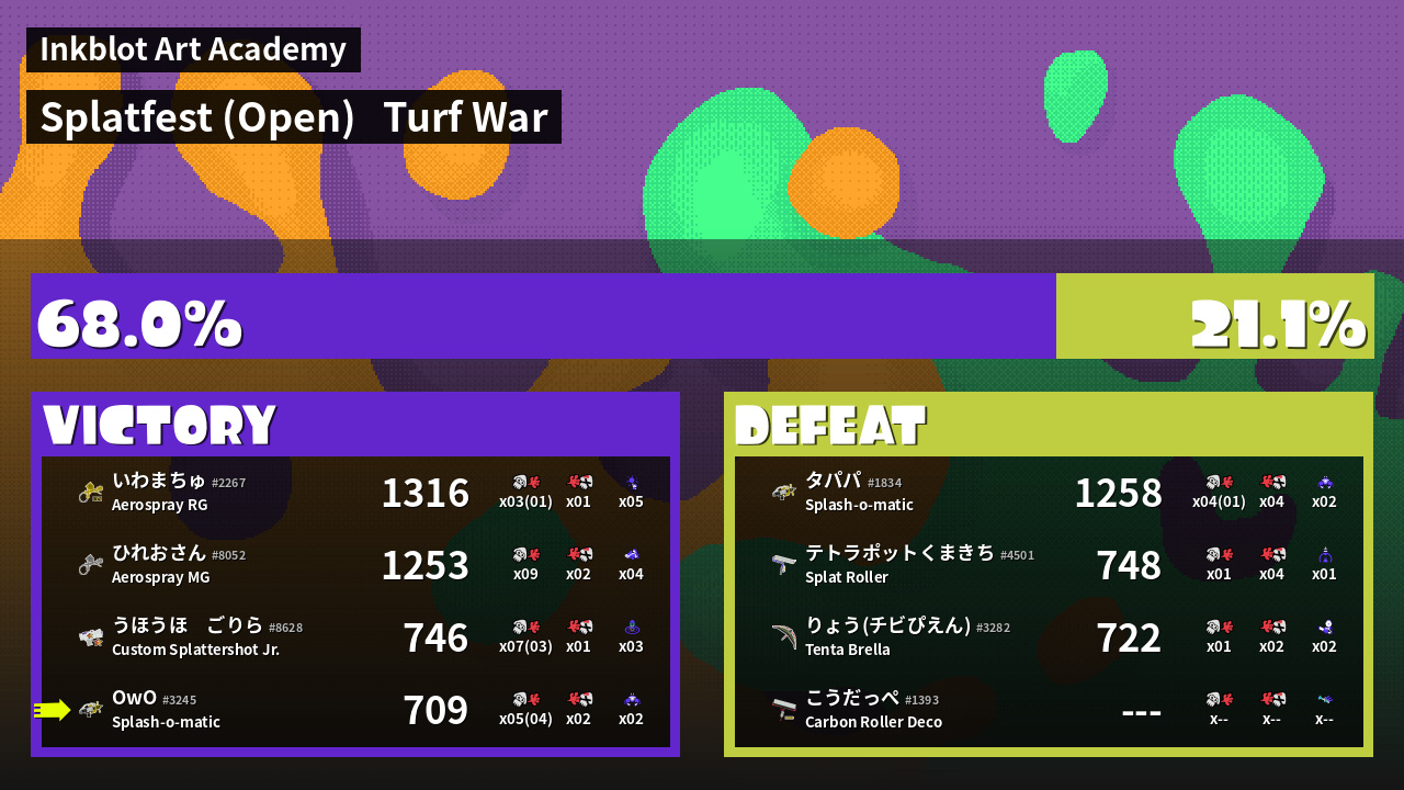 | Medals | #1 Super Jump Spot #1 Splat Assister #1 Ink Consumer | ||