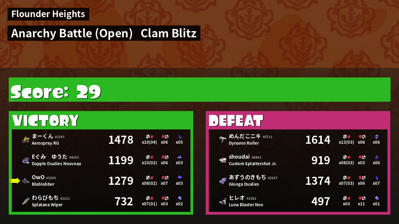 | Mode | Clam Blitz - Anarchy Battle (Open) | ||