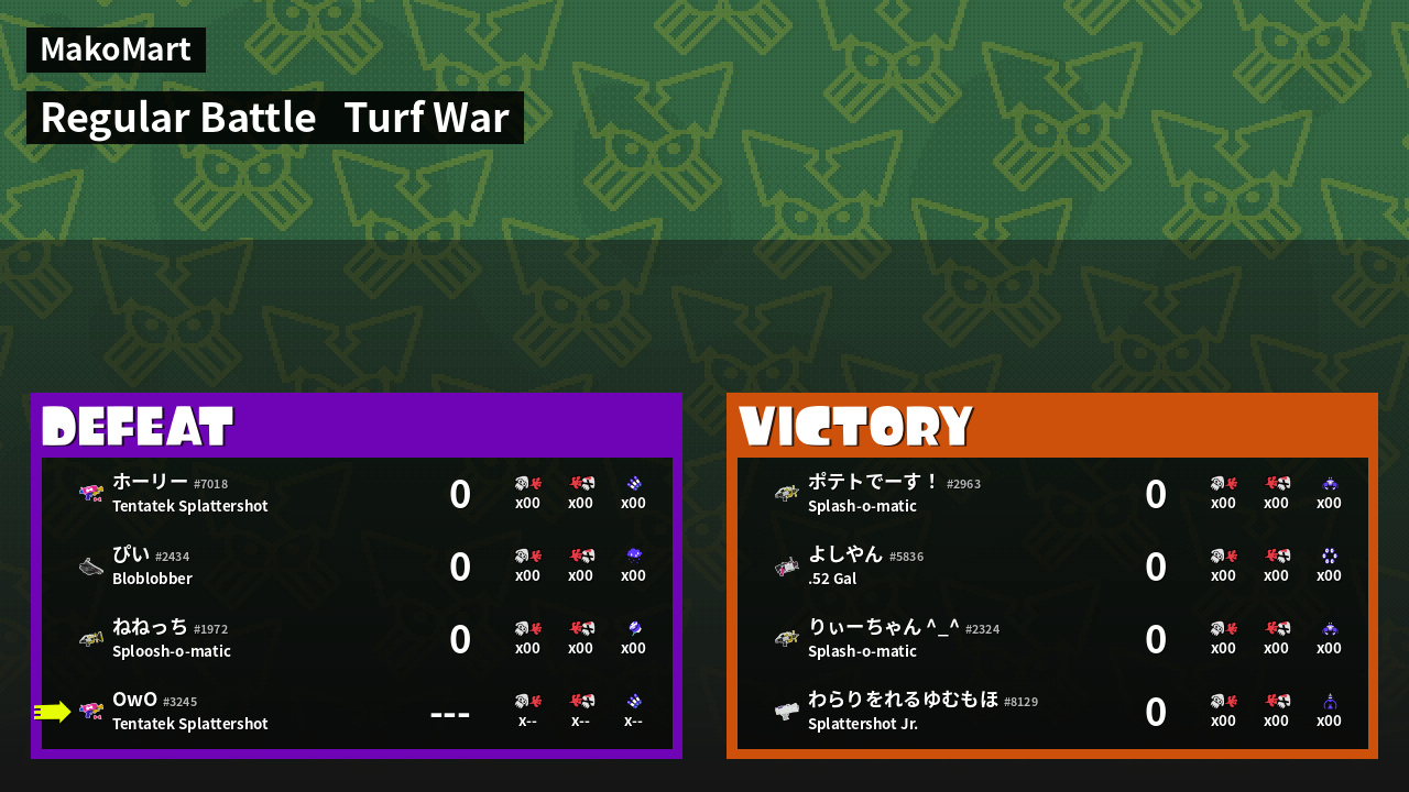 | Weapon | Tentatek Splattershot ( Splat Bomb / Triple Inkstrike) | ||