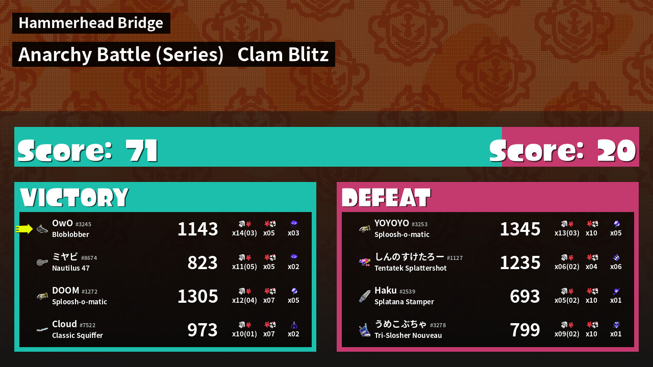 Name | Weapon | Inked | ![]() |