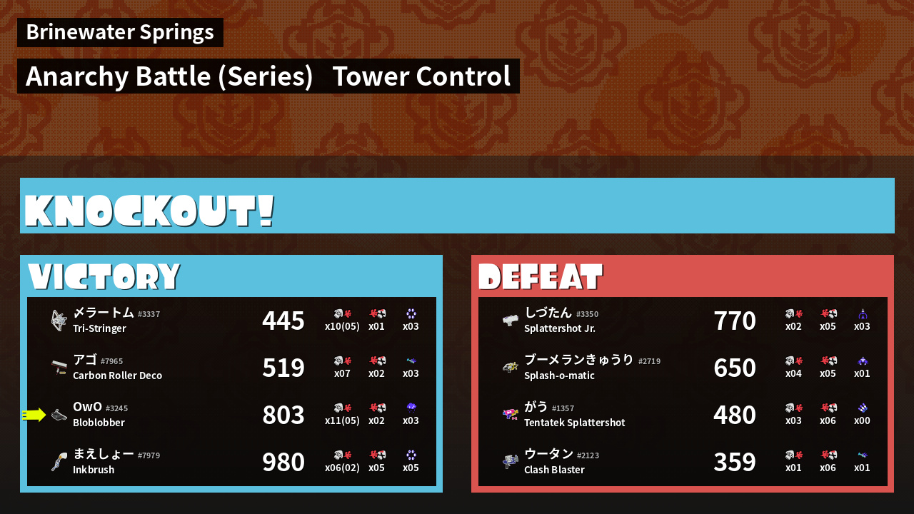 | Medals | #1 Overall Splatter #1 Splat Assister #1 Ink Storm User | ||
