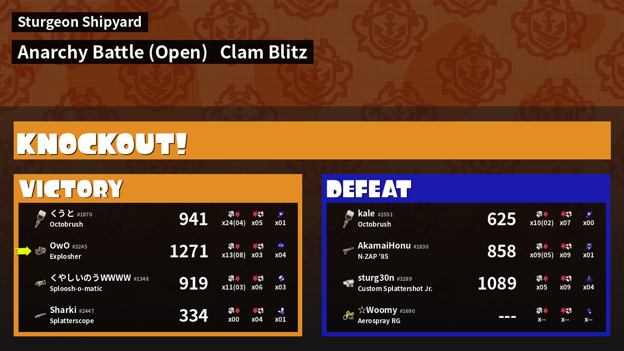 | Mode | Clam Blitz - Anarchy Battle (Open) | ||