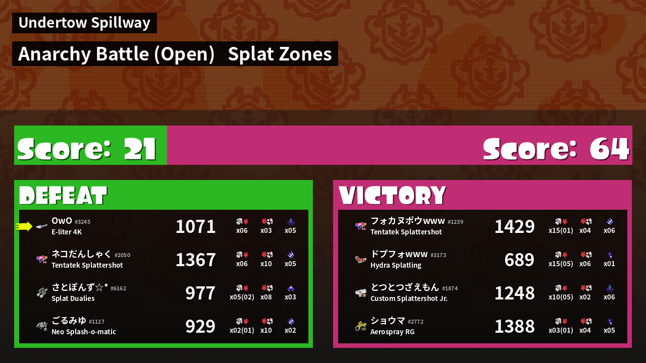 | Mode | Splat Zones - Anarchy Battle (Open) | ||
