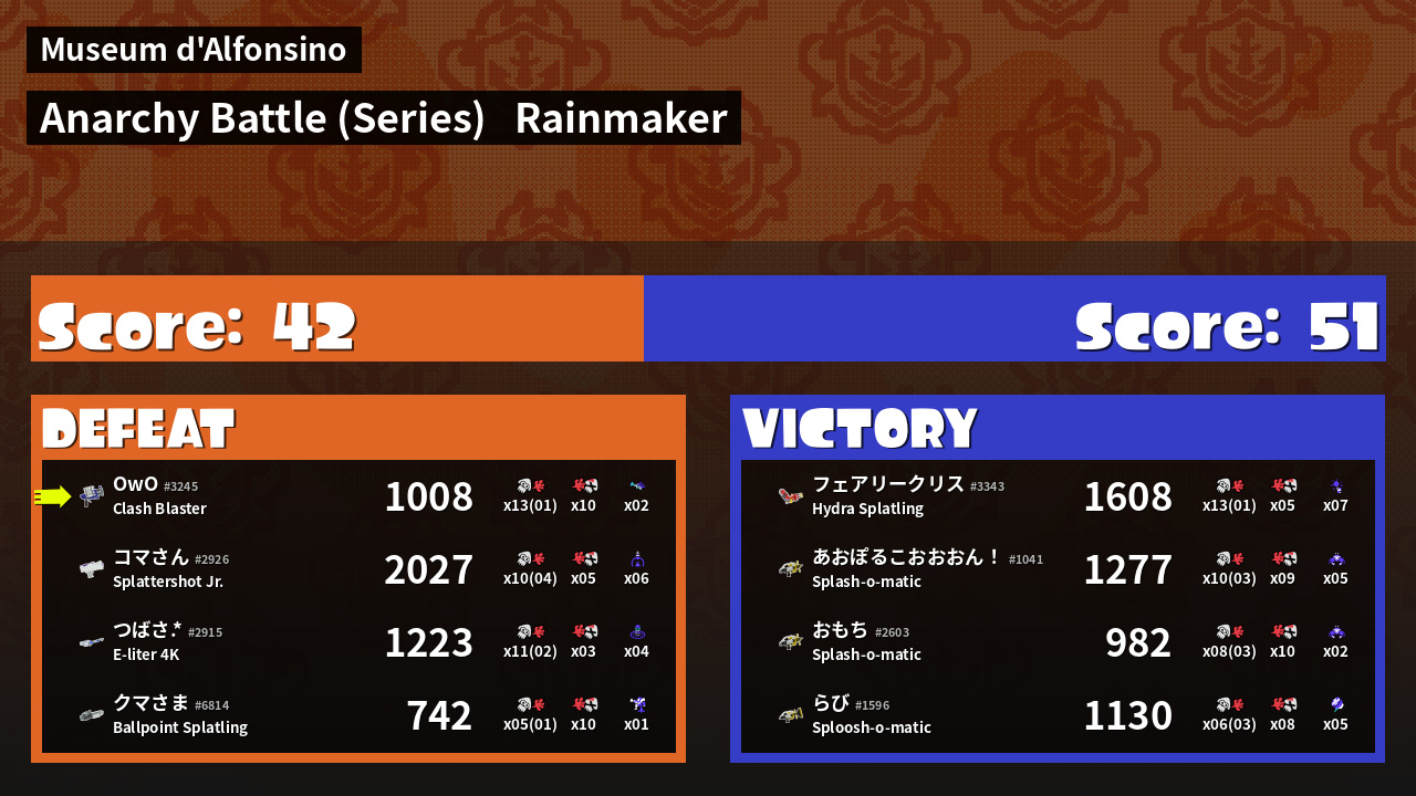 | Mode | Rainmaker - Anarchy Battle (Series) | ||