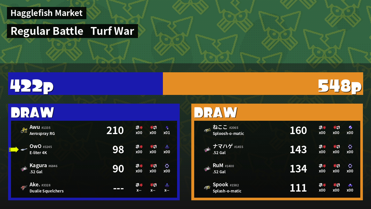 | Mode | Turf War - Regular Battle | ||