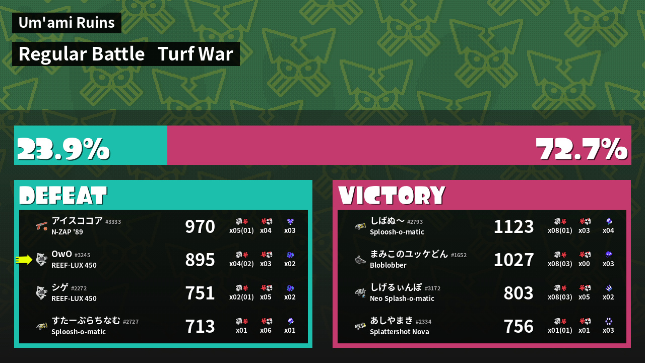 | Mode | Turf War - Regular Battle | ||