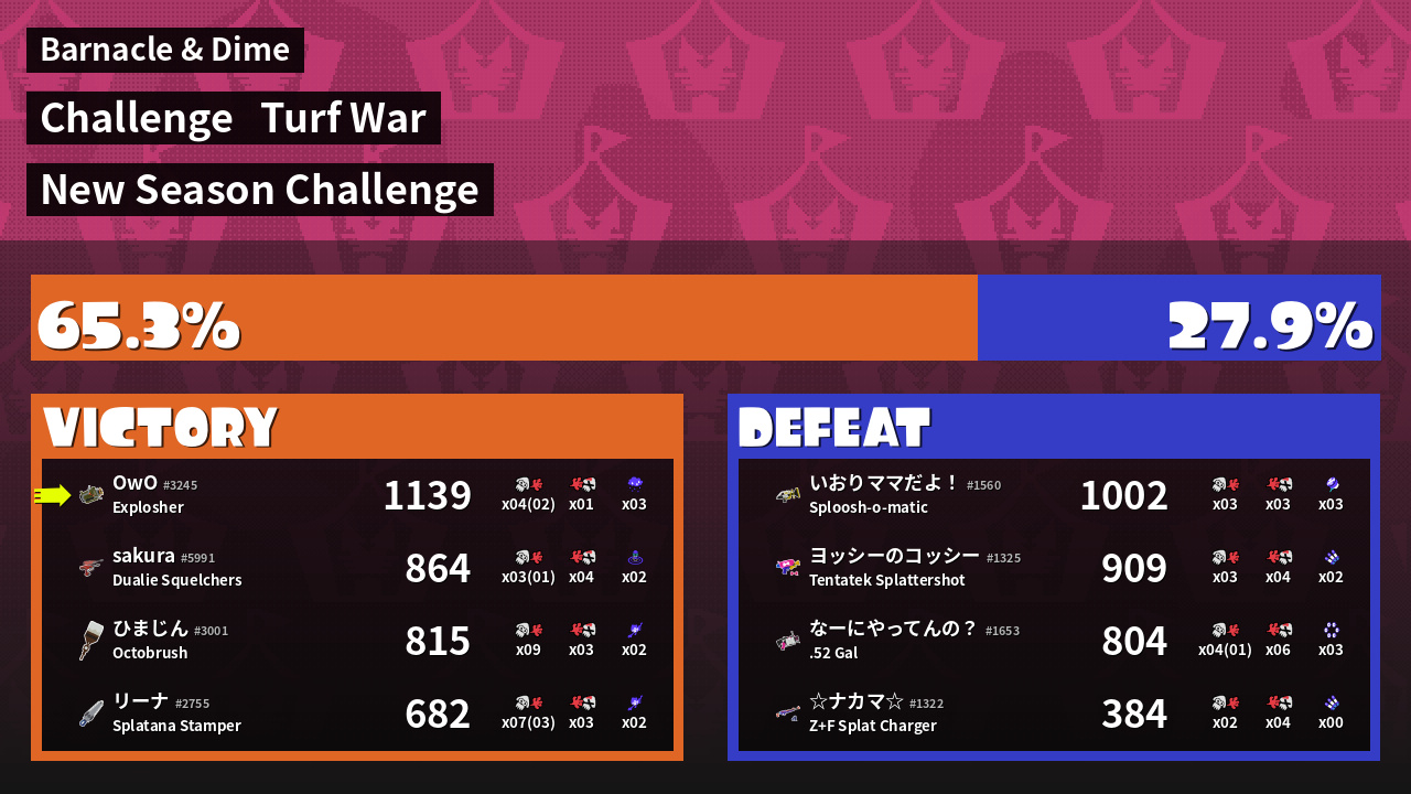 | Medals | #1 Turf Inker #1 Enemy-Base Inker #1 Super Jump Spot | ||