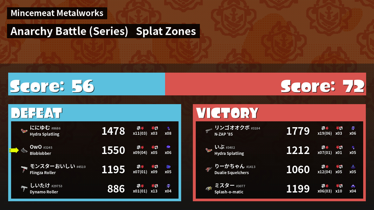 | Mode | Splat Zones - Anarchy Battle (Series) | ||