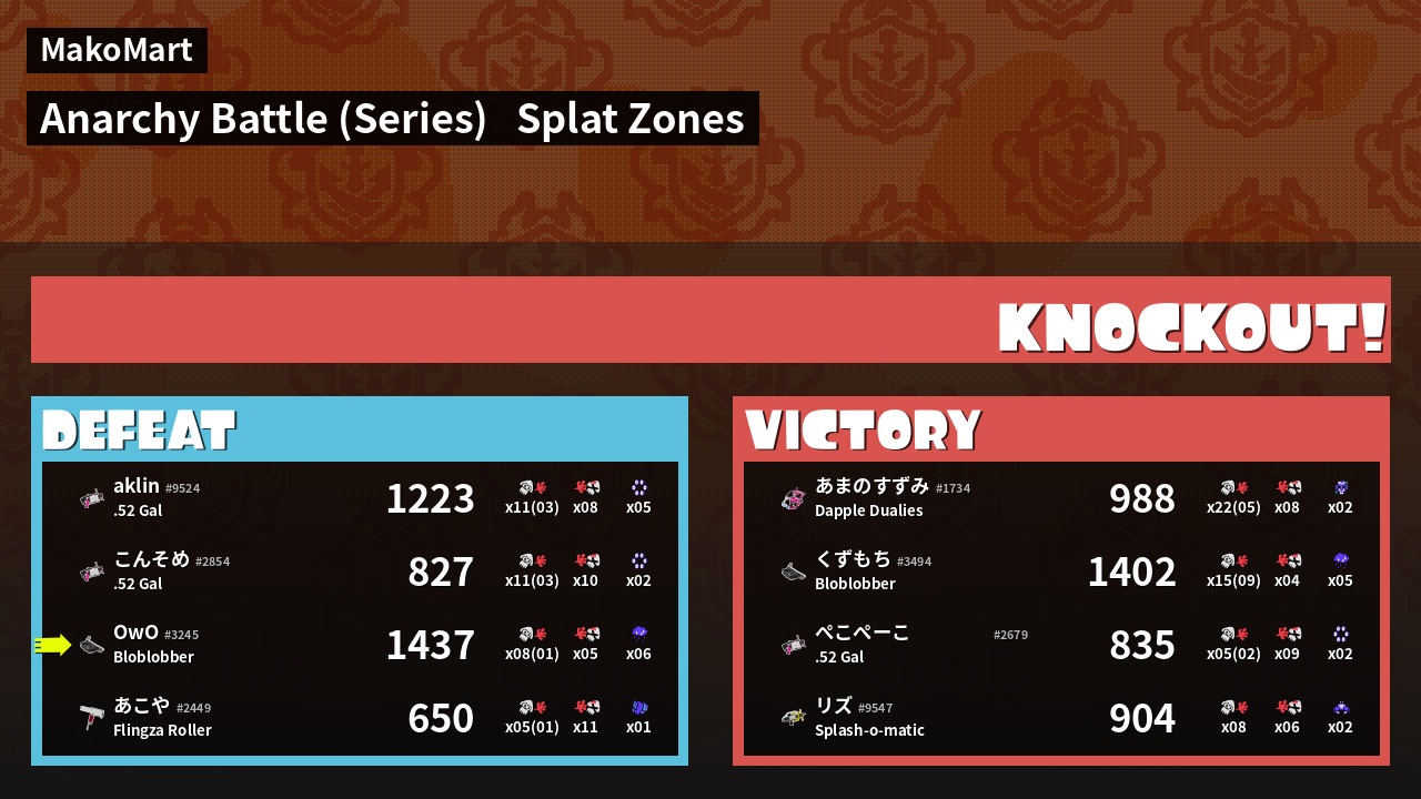 | Mode |  Splat Zones -  Anarchy Battle (Series) | ||