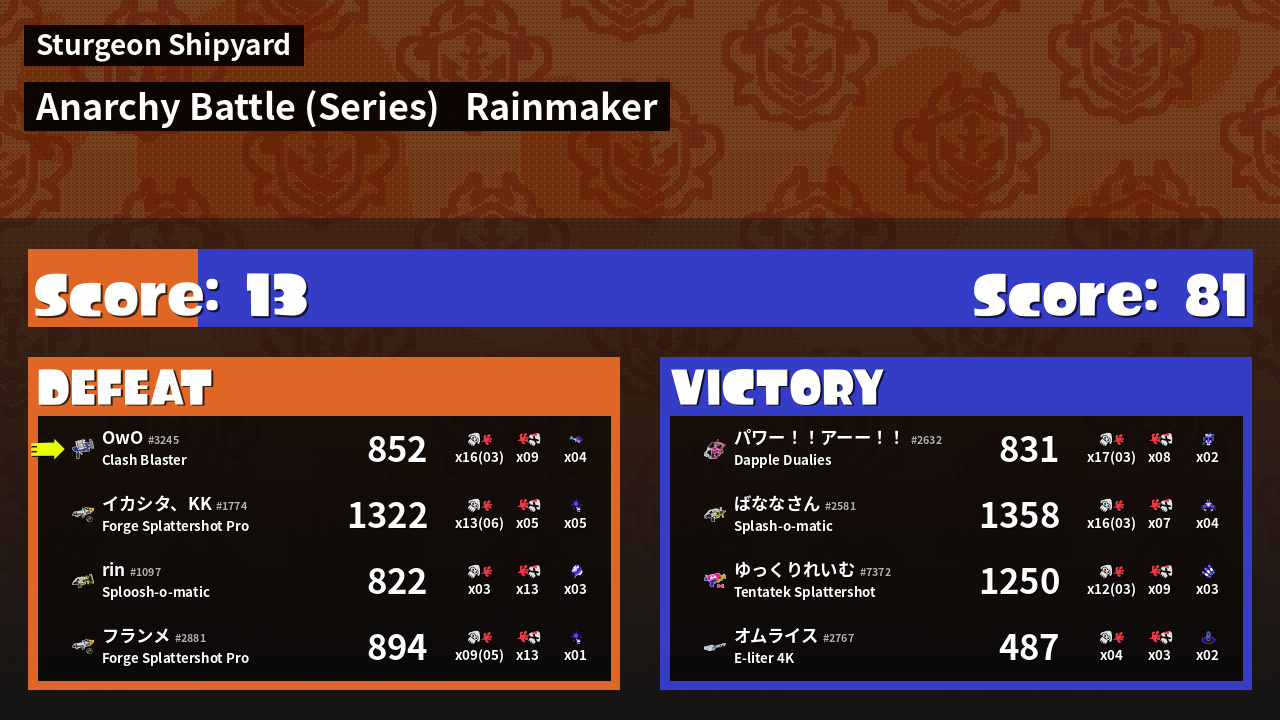 Kills / Deaths | 13 + 3 / 9 > Kill Ratio: 1.44 | ||
