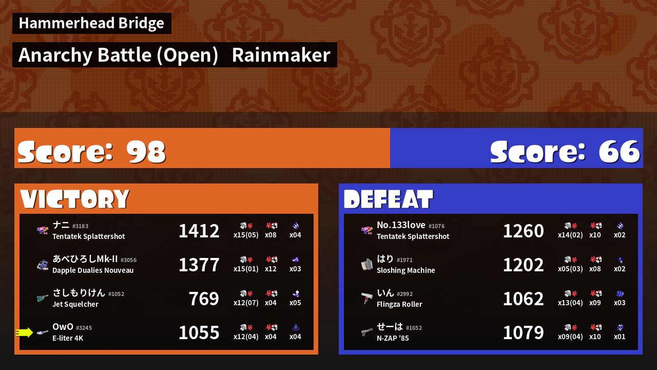 | Mode | Rainmaker - Anarchy Battle (Open) | ||