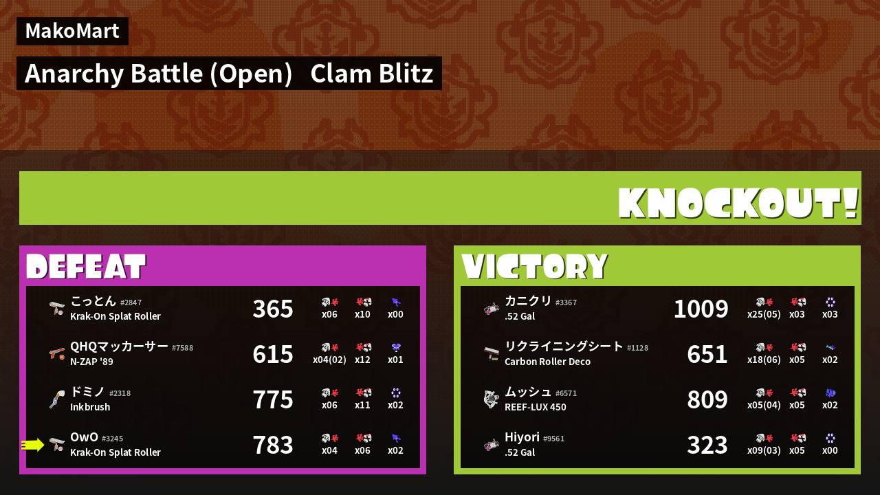 Name | Weapon | Inked | ![]() |