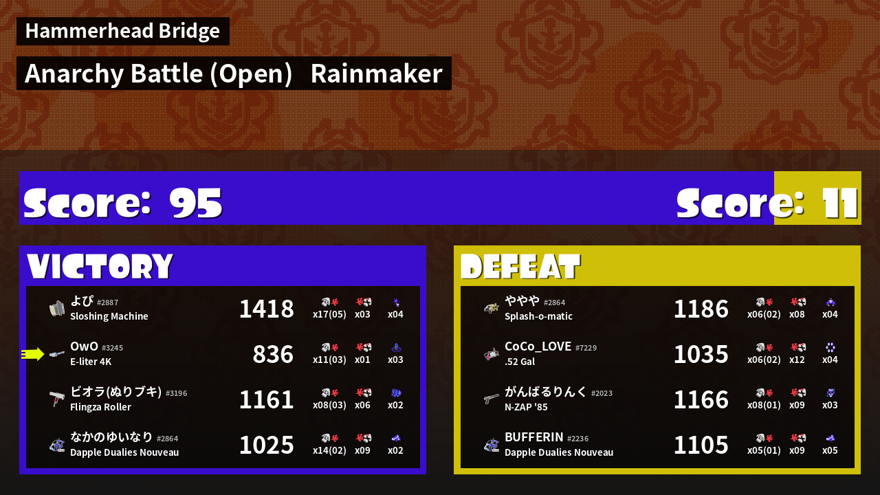 Name | Weapon | Inked | ![]() |