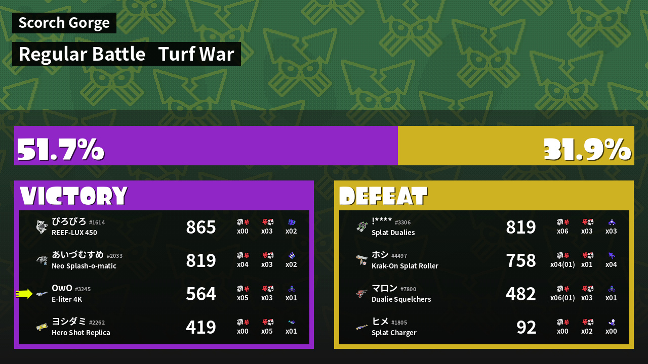 | 極稀有的天然紀念物 !**** #3306 |  Splat Dualies                    | 819 | 6 + 0 | 3 | 2.00 |  3 | |