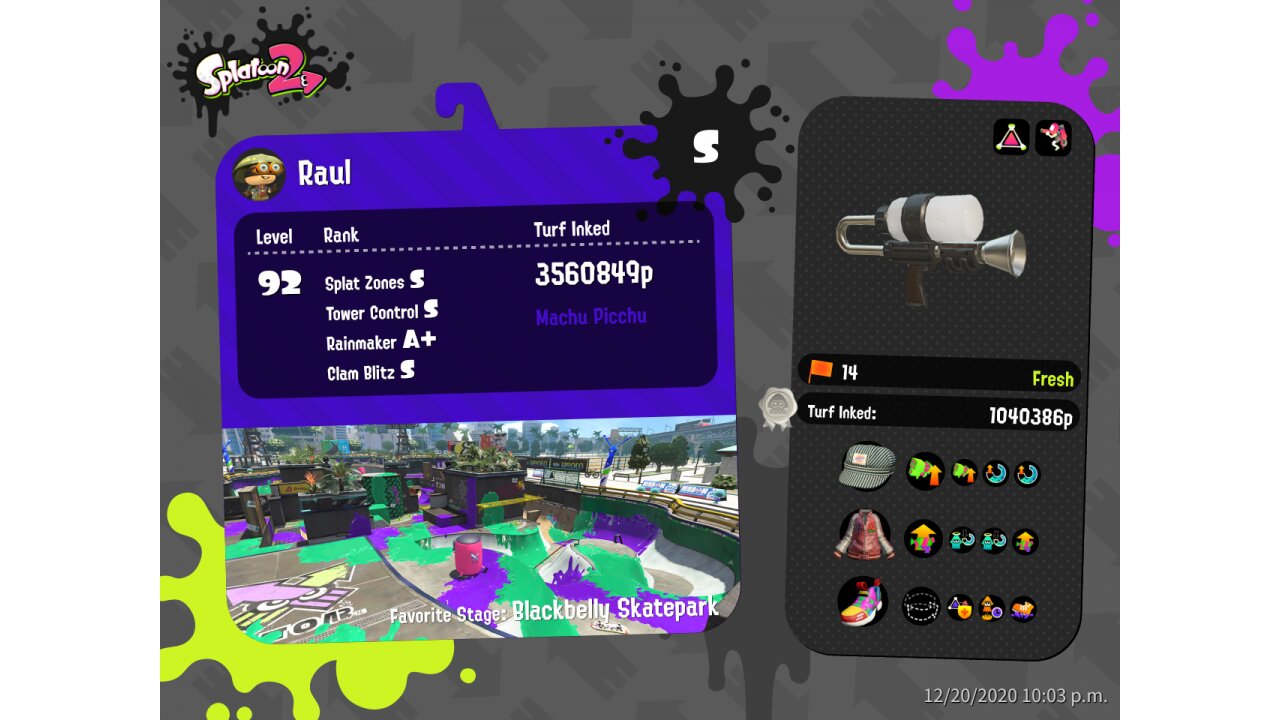 | Name | Weapon | Level | Rank | Inked | k+a/sp | k/d |